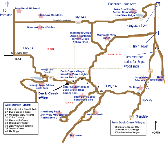Southern Utah Area Maps for Cedar Mountain, Brian Head, Panguitch Lake, and Duck Creek Village![]() Cedar Mountain Map ![]() Brian Head Map ![]() Panguitch Lake Map ![]() Duck Creek Village Area Map If you need more maps or directions feel free to give me a call. <-<-<-Go Back to Listings Search<-<-<- |